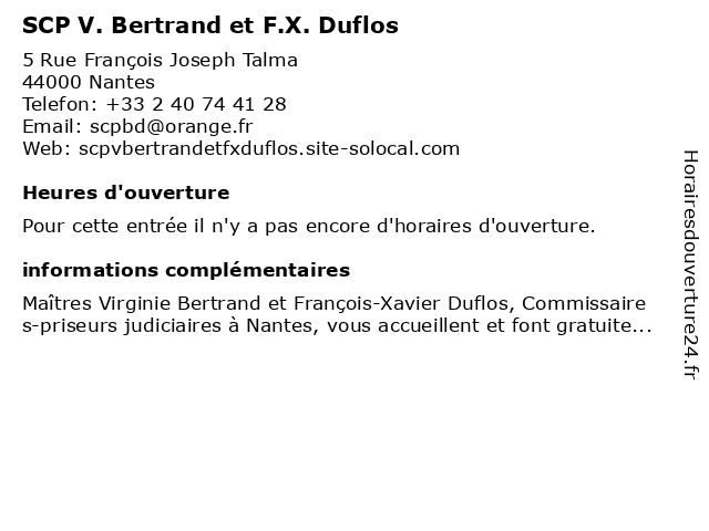 | Appeler SCP V. Bertrand et F.X. Duflos | |