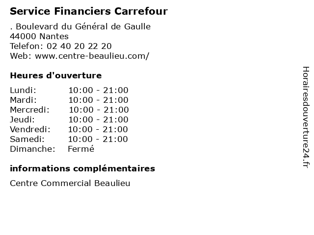 1 Carrefour (Distance: 0,00 km) . Boulevard du Général de Gaulle, 44000 Nantes beaute, bijoux, carrefour, chaussures, etam, lingerie, maison, mode enfant, mode femme, mode homme, restaurant, sport 2 Carrefour Spectacles (Distance: 0,00 km) . Boulevard du Général de Gaulle, 44000 Nantes beaulieu, carrefour, centre, commercial, nantes, spectacles 3 Carrefour Station Service (Distance: 6,37 km) . Rue Gaëtan Rondeau, 44272 Nantes automobiles, carrefour, oil, service, station, stations essences 4 Carrefour Spectacles (Distance: 6,78 km) n/a Boulevard du Général de Gaulle, 44272 Nantes carrefour, divertissements, loisirs, spectacles, sports 5 Carrefour des Familles (Distance: 6,82 km) - rue du 8 mai, 44230 Saint-Sébastien-sur-Loire carrefour, des, echange, familles, information, partage, rencontre, ressource 6 Carrefour City (Distance: 7,62 km) 16 Rue Lamoricière, 44100 Nantes achats, carrefour, city, courses, supermarché |