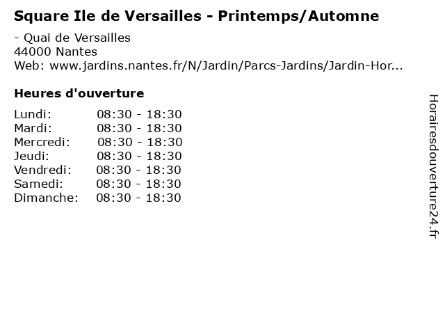 1 Square Ile de Versailles - Eté (Distance: 0,00 km) - Quai de Versailles, 44000 Nantes arbre, de, espace vert, eté, forêt, ile, jardin, loisirs, nature, parc, prairie, square, versailles 2 Square Ile de Versailles - Hiver (Distance: 0,00 km) - Quai de Versailles, 44000 Nantes arbre, de, espace vert, forêt, hiver, ile, jardin, loisirs, nature, parc, prairie, square, versailles 3 Le Café de L'Ile (Distance: 0,54 km) 19 Quai de Versailles, 44000 Nantes bar, boisson, brasserie, café, de, l'ile, le, restauration 4 Pharmacie de l'Ile (Distance: 2,40 km) 12 Rue La Noue Bras de Fer, 44200 Nantes aromatherapie, de, l'ile, médical, médicaments, paramédical, parapharmacie, pharmacie, santé, traitements 5 Parking Zenpark (Ile de Nantes - Vincent Gâche - CHU) (Distance: 2,41 km) 23 Boulevard Gaston Doumergue, 44200 Nantes chu, de, gâche, ile, nantes, parking, stationnement, vincent, zenpark 6 Century 21 - Ile Mangin Beaulieu (Distance: 3,08 km) 9 place Victor Mangin, 44200 Nantes 21, apparts, beaulieu, century, ile, investissements, locations, maisons, mangin, projets |