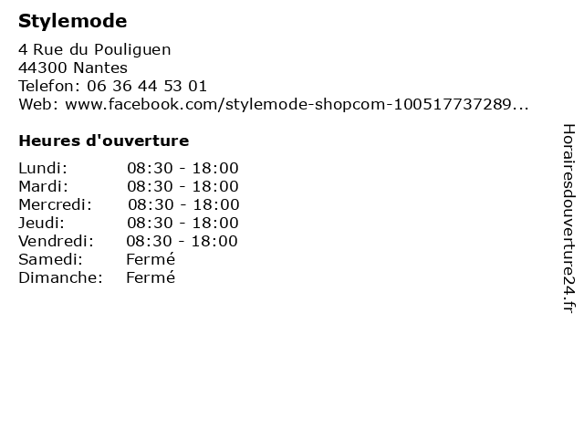 | Lundi | 08:30-18:00 |