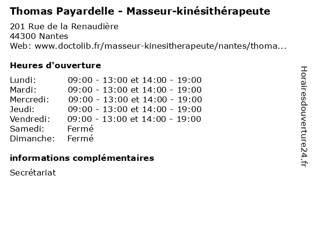 1 Craheix Paul Valentin Thomas (Distance: 0,99 km) 21 Rue De Thann, 44300 Nantes craheix, paul, restaurants, thomas, valentin 2 Thomas Coursier (Distance: 1,70 km) 27 Rue Des Castors, 44300 Nantes coursier, restaurants, rorteau, thomas 3 Marine Thomas - Sage-femme (Distance: 2,83 km) 2 Bis Rue d'Allonville, 44000 Nantes femme, marine, sage, sagefemme, sante, thomas 4 Thomas Fontorbe - Masseur-kinésithérapeute (Distance: 3,15 km) 9 Rue Pitre Chevalier, 44000 Nantes fontorbe, kinésithérapeute, masseur, médecin, médecine, médical, pharmaceutique, secretariat, thomas, traitement 6 Ollivier Thomas (Distance: 3,34 km) 30 Rue Marechal Joffre, 44000 Nantes ollivier, restaurants, thomas |