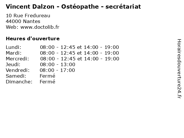| Lundi | 08:00-12:45 et 14:00-19:00 |