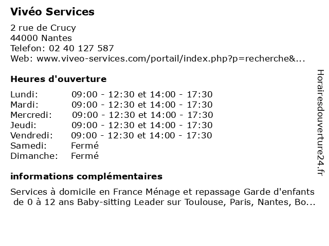 | Lundi | 09:00-12:30 et 14:00-17:30 |