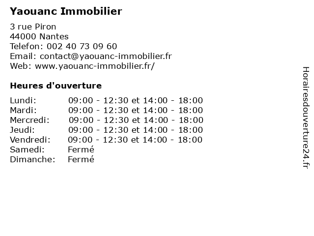 | Lundi | 09:00-12:30 et 14:00-18:00 |