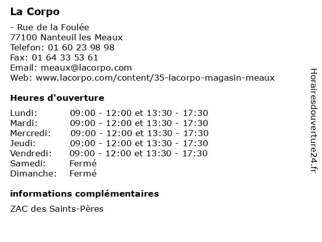 | Mardi | 09:00-12:00 et 13:30-17:30 |