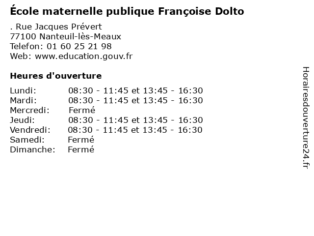 | Mardi | 08:30-11:45 et 13:45-16:30 |