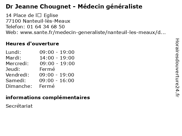 1 Dr Chougnet Jacques - Médecine générale (Distance: 0,05 km) 3 Place de l'église, 77100 Nanteuil les meaux chougnet, docteur, dr, générale, jacques, medecin, médecine, nanteuil les meaux 2 École Maternelle Publique Jeanne d'Albret (Distance: 2,78 km) - Mail des Allobroges, 77100 Meaux cours, d'albret, education, jeanne, maternelle, publique, services, école 4 Café Jeanne d'Arc (Distance: 3,38 km) 14 Place du Marché, 77100 Meaux arc, bar, café, d'arc, jeanne, terrasse 5 Fromont Jeanne Psychomotricienne et Danse Thérapeute (Distance: 16,73 km) 105 Avenue du Général Leclerc, 77400 Lagny-sur-Marne danse, et, fromont, jeanne, psychomotricienne, thérapeute 6 Crèche Familiale Jeanne Alexandre (Distance: 39,03 km) 76 Boulevard Charles de Gaulle, 93380 Pierrefitte-sur-Seine alexandre, caregivers houses, child care, crèche, familiale, family home, home care, jeanne, kindergartens, micro-nurseries, parental home |