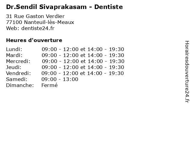 Lundi | 09:00-12:00 et 14:00-19:30 |