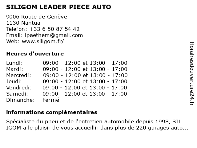 | Samedi | 09:00-12:00 et 13:00-17:00 |