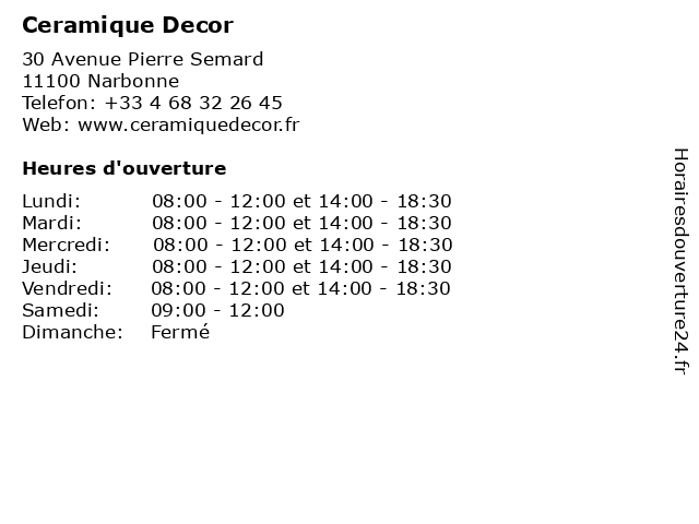 | Lundi | 08:00-12:00 et 14:00-18:30 |
