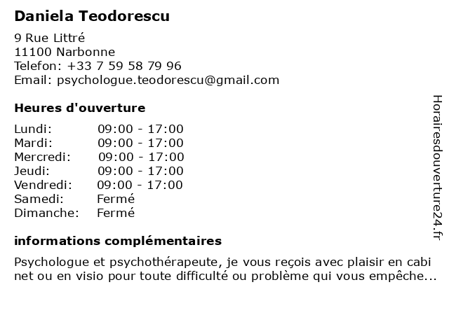 | Lundi | 09:00-17:00 |