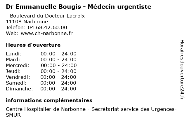 | Samedi | 00:00-24:00 |