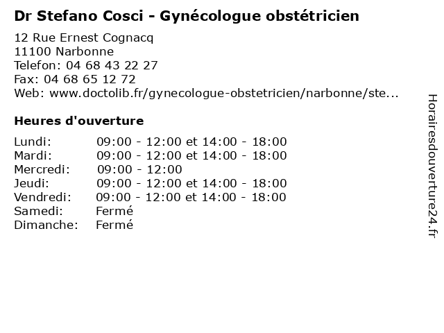 | Lundi | 09:00-12:00 et 14:00-18:00 |