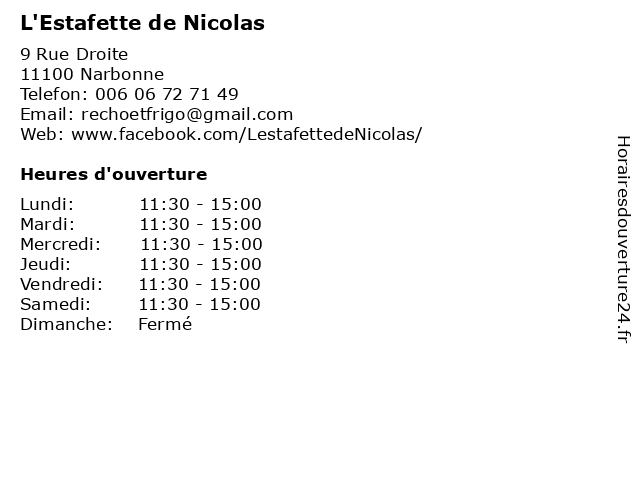 Termes de recherche pour L'Estafette de Nicolas:restaurant, de, nicolas, original, français, traditionnel, l'estafette |