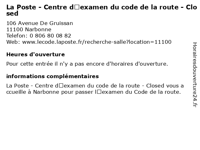 | Appeler La Poste - Centre d’examen du code de la route - Closed | |