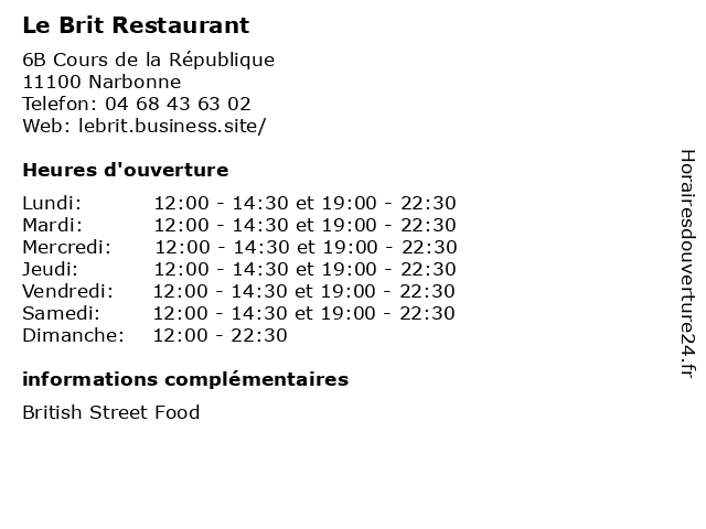 | Mardi | 12:00-14:30 et 19:00-22:30 |