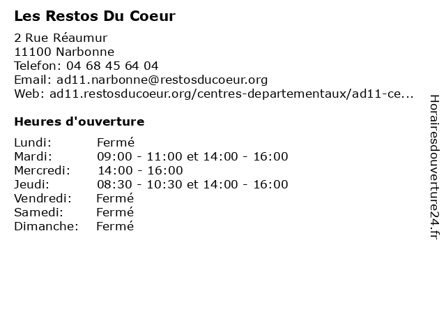1 Les Restos Du Coeur (Distance: 18,37 km) 139 Rue Pierre Curie, 11210 Port-la-Nouvelle aides, alimentaire, coeur, du, les, restos, santé, solidarité, soutien 2 Les Restos Du Coeur (Distance: 18,67 km) 25 rue Necker, 11200 Lezignan Corbières aides, alimentaire, coeur, du, les, restos, santé, solidarité, soutien 3 Secours Catholique (Distance: 0,89 km) 1 Rue Guiraud Riquier, 11100 Narbonne associatif, association, bénévolat, bénévole, catholique, secours, solidaire, solidarité 4 Association Narbonnaise pour les Actions d'Adaptation (Distance: 1,08 km) 56 Rue de Saint-Salvayre, 11100 Narbonne actions, association, associations, d'adaptation, enfance, les, narbonnaise, pour, protection, sociale, soutien, urgence 5 Institut Médico-Educatif Louis Signoles (Distance: 1,23 km) - Route de Marcorignan, 11100 Narbonne associations, educatif, enfance, institut, louis, médico, protection, signoles, sociale, soutien, urgence 6 Emmaüs "Depot" (Distance: 2,48 km) n/a Route de Carcassonne, 11100 Narbonne "depot", aide, dons, emmaüs, solidarité, vente |