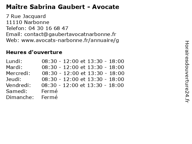 | Lundi | 08:30-12:00 et 13:30-18:00 |