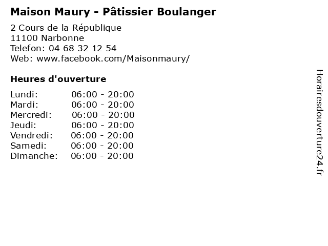 | Lundi | 06:00-20:00 |
