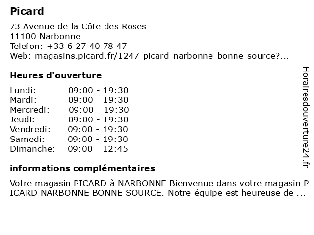 3 Picard (Contactez notre Service) (Distance: 2,80 km) - Route de Perpignan, 11100 Narbonne contactez, la production française, les fruits, les légumes, notre, picard, produit développé en france, service, société française de produits surgelés, société: en cuisine, un magasin picard 4 Travaux Agricoles Picard Simon (Distance: 41,45 km) 5 Rue des Affenages, 11350 Tuchan agricoles, picard, simon, travaux 5 Dr Remy Picard - Médecin généraliste (Distance: 53,39 km) 9 bis Avenue General de Gaulle, 34140 Mèze consultation, docteur, dr, généraliste, med, médecin, picard, remy, traitement 6 |