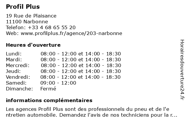 | Lundi | 08:00-12:00 et 14:00-18:30 |