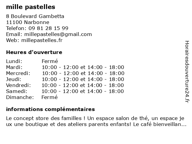 | Mardi | 10:00-12:00 et 14:00-18:00 |