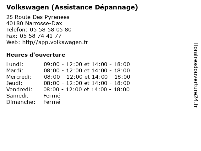 1 Volkswagen (Distance: 0,00 km) 28 Route Des Pyrenees, 40180 Narrosse-Dax automobiles, concessionnaire, garage, motos, volkswagen 2 Volkswagen (Activités Véhicules Neufs) (Distance: 0,00 km) 28 Route Des Pyrenees, 40180 Narrosse-Dax activités, automobiles, concessionnaire, garage, motos, neufs, volkswagen, véhicules 3 Volkswagen (Activités Véhicules dOccasion) (Distance: 0,00 km) 28 Route Des Pyrenees, 40180 Narrosse-Dax activités, automobiles, concessionnaire, doccasion, garage, motos, volkswagen, véhicules 4 Volkswagen (Atelier Mécanique) (Distance: 0,00 km) 28 Route Des Pyrenees, 40180 Narrosse-Dax atelier, automobiles, concessionnaire, garage, motos, mécanique, volkswagen 5 Aquitaine Rapide Dépannage (Distance: 1,17 km) 120 Avenue Georges Clémenceau, 40100 Dax aquitaine, chauffagiste, dépannage, entreprise, gaz, plombier, rapide 6 Federation Alcool Assistance - 1° et 2° mardis (Distance: 1,94 km) 9 Rue Borda, 40100 Dax 1°, 2°, alcool, assistance, et, federation, mardis, public, services |