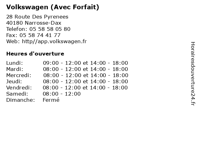 | Lundi | 09:00-12:00 et 14:00-18:00 |