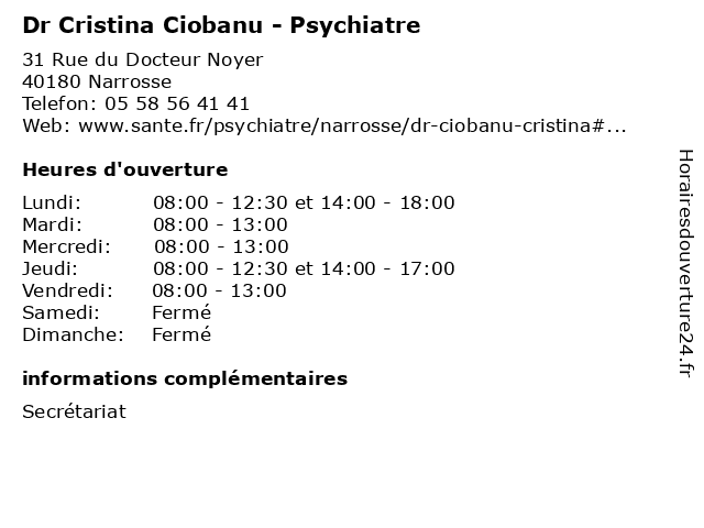 | Lundi | 08:00-12:30 et 14:00-18:00 |
