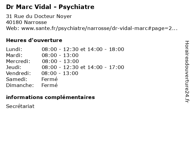 | Lundi | 08:00-12:30 et 14:00-18:00 |