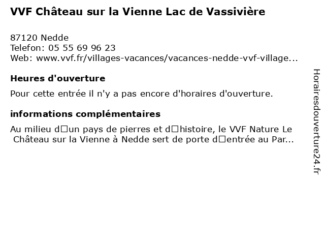| Appeler VVF Château sur la Vienne Lac de Vassivière | |