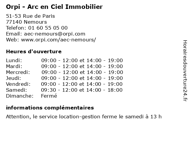| Mercredi | 09:00-12:00 et 14:00-19:00 |
