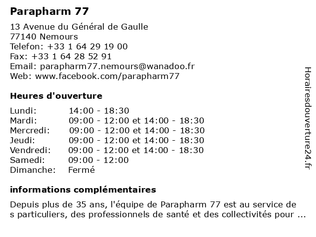 | Mercredi | 09:00-12:00 et 14:00-18:30 |