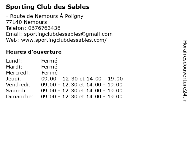 | Dimanche | 09:00-12:30 et 14:00-19:00 |