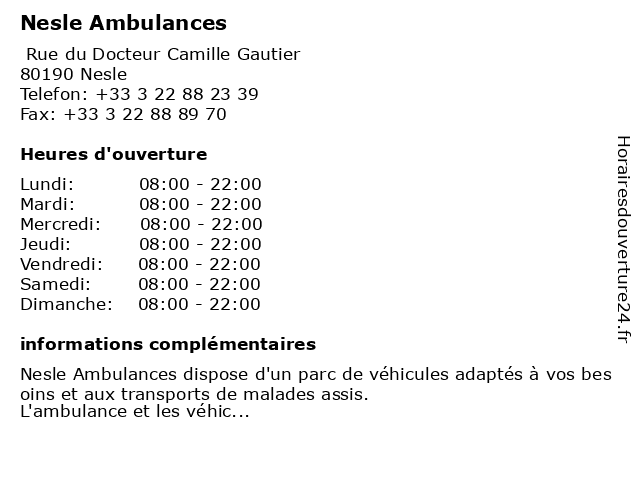 1 Ambulances Taxis De Chaulnes (Distance: 9,75 km) 89 Avenue Aristide Briand, 80320 Chaulnes ambulances, chaulnes, de, taxis 3 Ambulances Rosièroises (Distance: 15,00 km) Rue de Meharicourt, 80170 Rosières-en-Santerre ambulances, rosièroises 5 Ambulances Dagnicourt (Distance: 34,37 km) 6 Rue de la Comédie, 02800 Fère (la) ambulances, dagnicourt 6 |