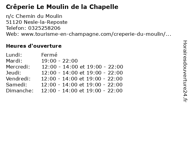 | Lundi | Fermé |