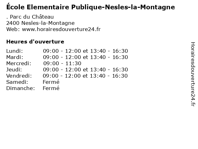 | Mardi | 09:00-12:00 et 13:40-16:30 |