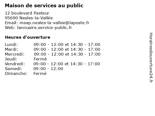 | Mardi | 09:00-12:00 et 14:30-17:00 |