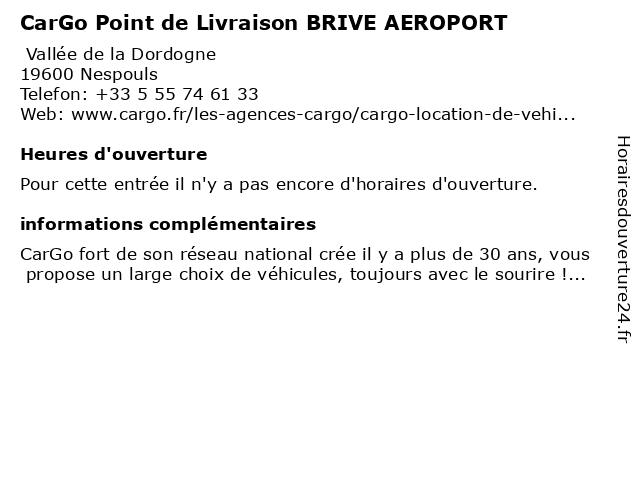 | Appeler CarGo Point de Livraison BRIVE AEROPORT | |