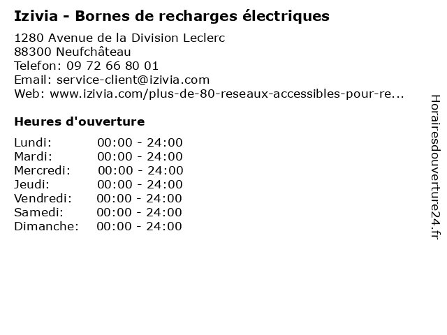 1 Izivia - Bornes de recharges électriques (Distance: 1,97 km) 19 Rue de la 1ère Armée Française, 88300 Neufchâteau automobile, borne, bornes, de, izivia, recharge, recharges, électrique, électriques 2 Izivia - Bornes de recharges électriques (Distance: 2,47 km) - Rue de la Cure, 88300 Rollainville automobile, borne, bornes, de, izivia, recharge, recharges, électrique, électriques 3 Izivia - Bornes de recharges électriques (Distance: 2,75 km) 2 Rue de la Maison de Dieu, 88300 Neufchâteau automobile, borne, bornes, de, izivia, recharge, recharges, électrique, électriques 4 Izivia - Bornes de recharges électriques (Distance: 22,54 km) 5 Rue Pasteur, 54170 Colombey-les-Belles automobile, borne, bornes, de, izivia, recharge, recharges, électrique, électriques 5 Izivia - Bornes de recharges électriques (Distance: 39,73 km) 22 Rue Abbé Muths, 54230 Neuves-Maisons automobile, borne, bornes, de, izivia, recharge, recharges, électrique, électriques 6 Izivia - Bornes de recharges électriques (Distance: 44,39 km) 4 Rue du Bois de la Sivrite, 54500 Vandœuvre-lès-Nancy automobile, borne, bornes, de, izivia, recharge, recharges, électrique, électriques |