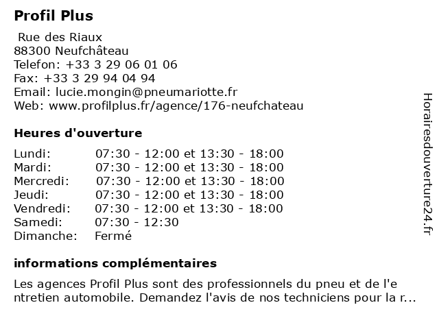 | Lundi | 07:30-12:00 et 13:30-18:00 |