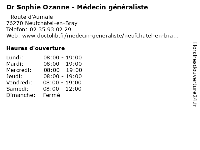 1 Dr Anne-Sophie Pimont - Médecin généraliste (Distance: 0,00 km) - Route d'Aumale, 76270 Neufchâtel-en-Bray anne, consultation, docteur, dr, généraliste, med, médecin, médecine, pimont, sophie, traitement 2 Boulangerie Sophie Lebreuilly (Distance: 1,19 km) 3 rue Saint Pierre, 76270 Neufchâtel-en-Bray boulangerie, croissant, lebreuilly, pain, pâtisserie, sophie, viennoiserie 3 Office Notarial - Ozanne, De Fougy-Rihouey & Robbes (Distance: 42,50 km) 107 Allée François Mitterand, 76100 Rouen achat, de, fougy, location, notaire, notarial, office, ozanne, rihouey, robbes, vente 4 Dr Romain Alexandre - Médecin généraliste (Distance: 0,00 km) - Route d'Aumale, 76270 Neufchâtel-en-Bray alexandre, docteur, dr, generaliste, généraliste, medecin, médecin, romain, soins 5 Dr Lucille Biard - Médecin généraliste (Distance: 0,00 km) - Route d'Aumale, 76270 Neufchâtel-en-Bray biard, docteur, dr, generaliste, généraliste, lucille, medecin, médecin, soins 6 Dr Ségolène Bracq - Médecin généraliste (Distance: 0,00 km) - Route d'Aumale, 76270 Neufchâtel-en-Bray bracq, docteur, dr, generaliste, généraliste, medecin, médecin, soins, ségolène |