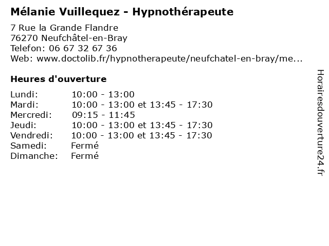 | Mardi | 10:00-13:00 et 13:45-17:30 |