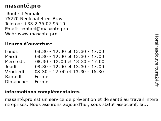 | Lundi | 08:30-12:00 et 13:30-17:00 |
