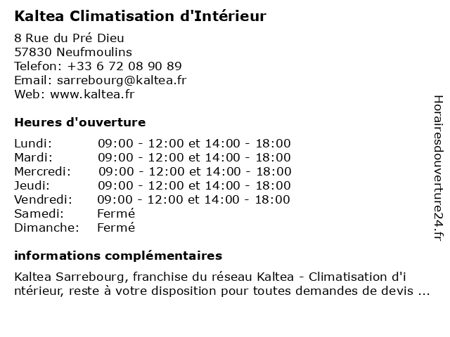 | Lundi | 09:00-12:00 et 14:00-18:00 |