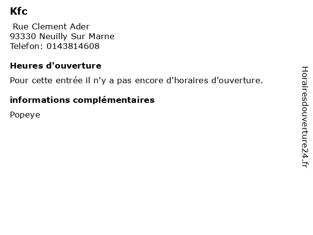 1 KFC (Distance: 9,88 km) . Route Nationale 4, 77340 Pontault Combault boissons, burger, fastfood, frites, kfc, restaurant 4 Kfc (Distance: 11,54 km) 95 Rue Helene Cochennec, 93300 Aubervilliers caribbean, food, kfc, kreyol, restaurants 6 KFC (Distance: 14,86 km) . avenue Nungesser & Coli, 95500 Gonesse boissons, burger, fastfood, frites, kfc, restaurant |