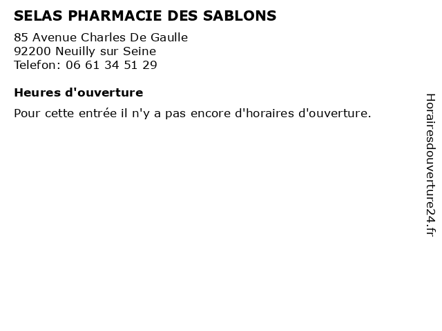 | Appeler SELAS PHARMACIE DES SABLONS | |