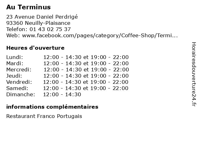 | Mardi | 12:00-14:30 et 19:00-22:00 |
