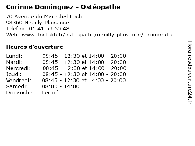 | Lundi | 08:45-12:30 et 14:00-20:00 |