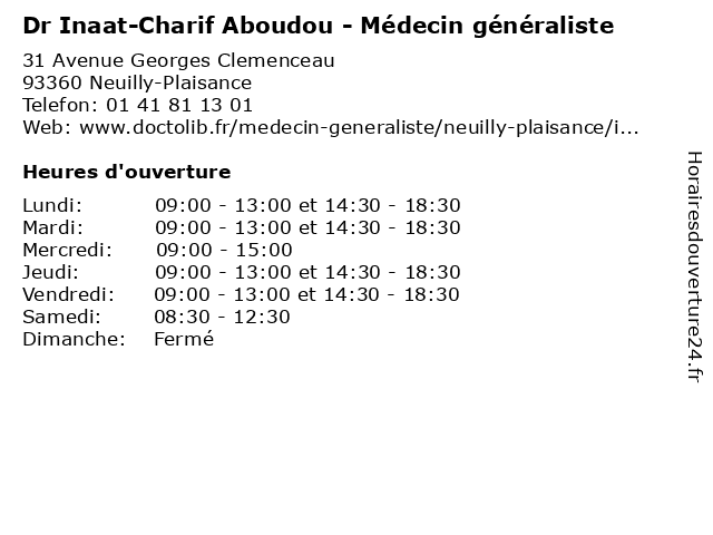 | Lundi | 09:00-13:00 et 14:30-18:30 |